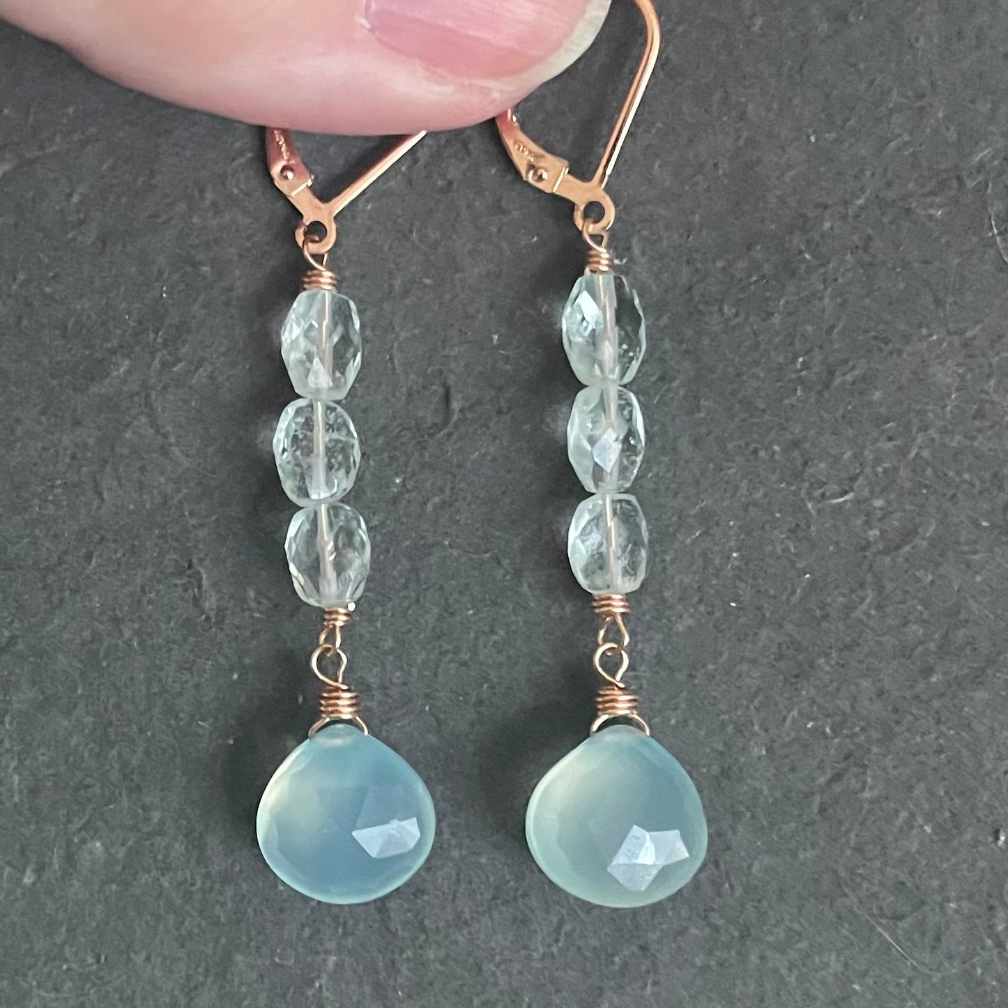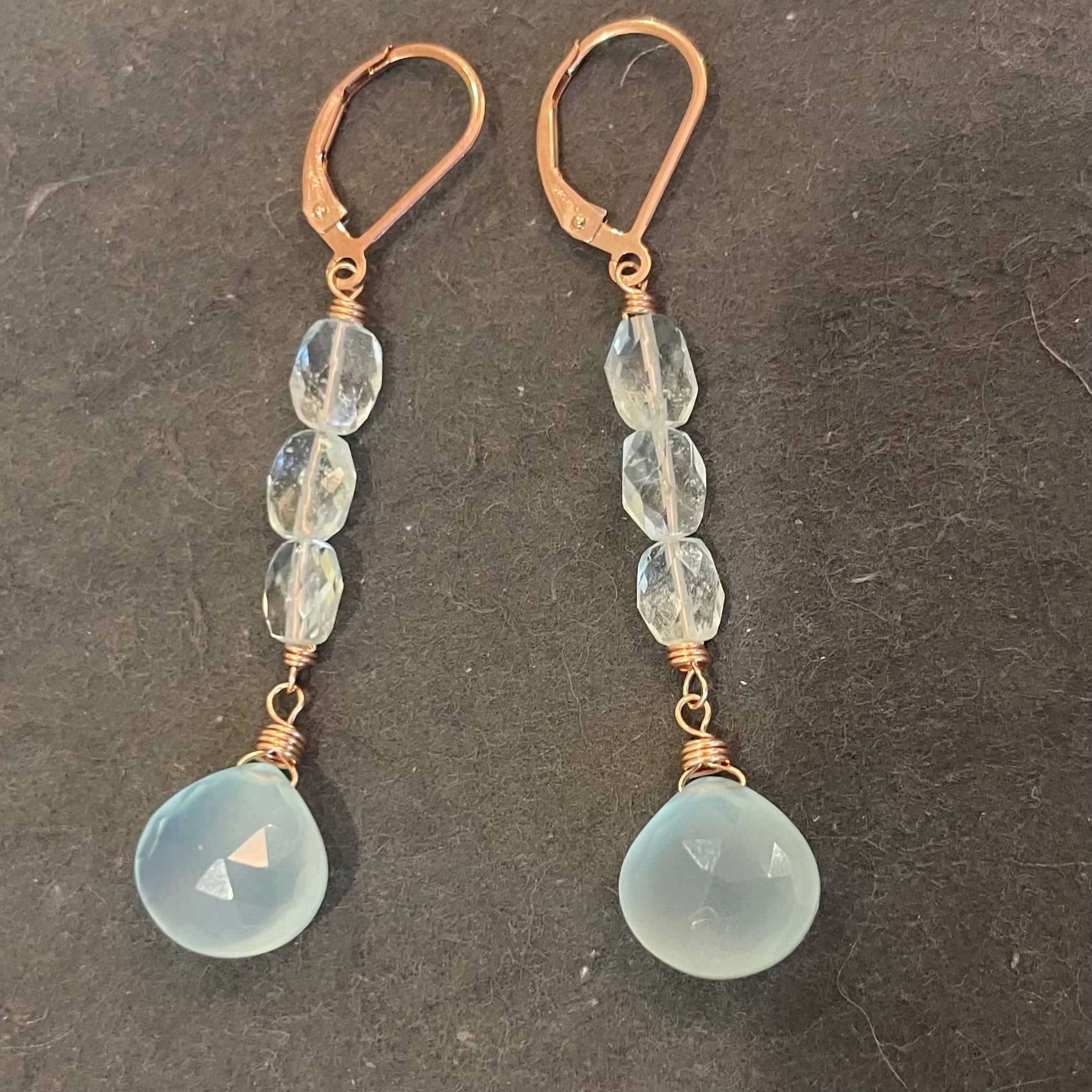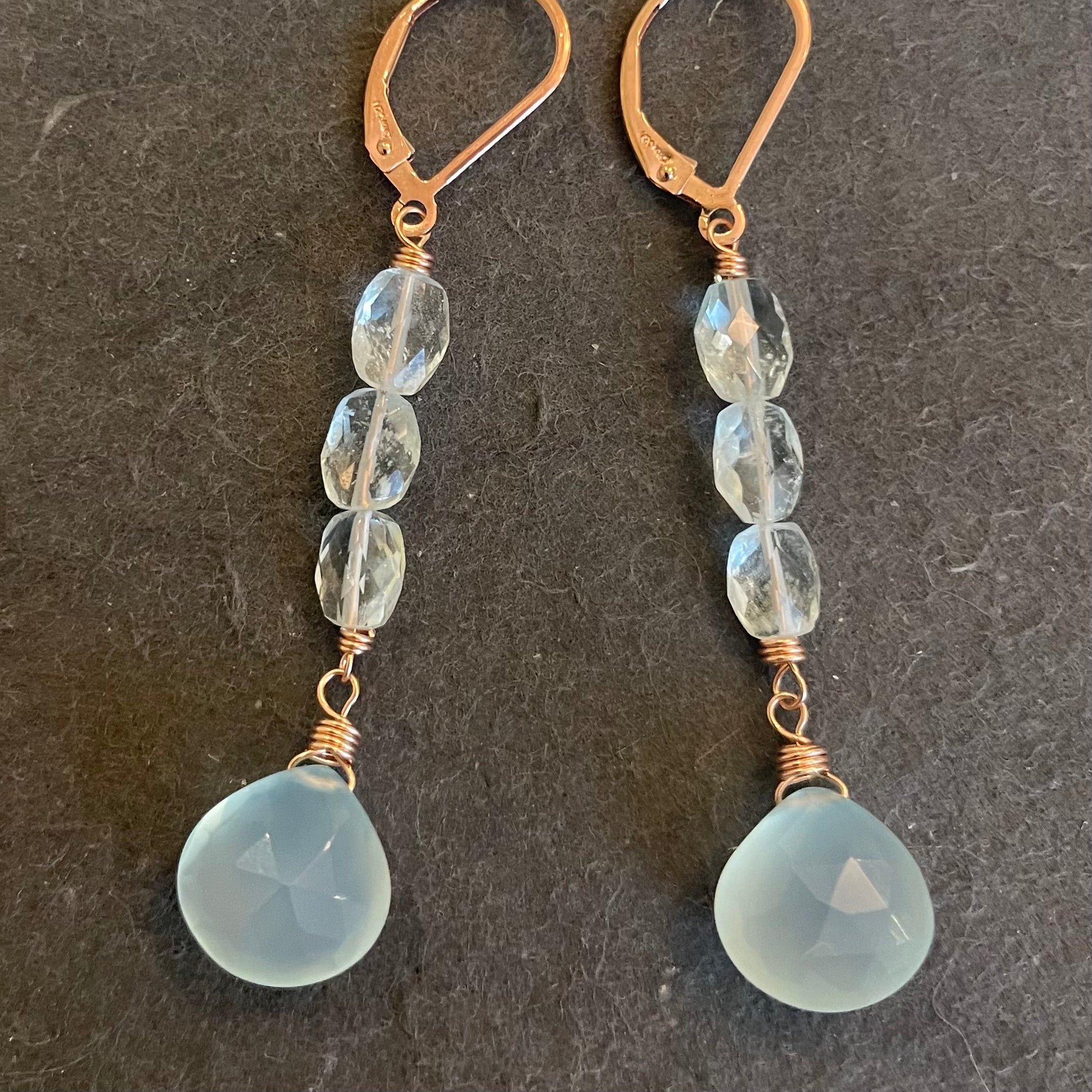 Aquamarine and Chalcedony Stack Earrings, metal options