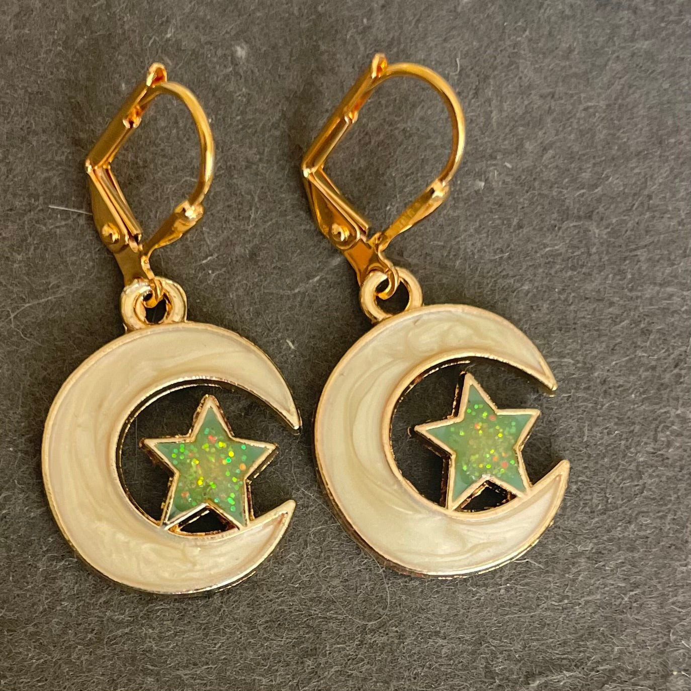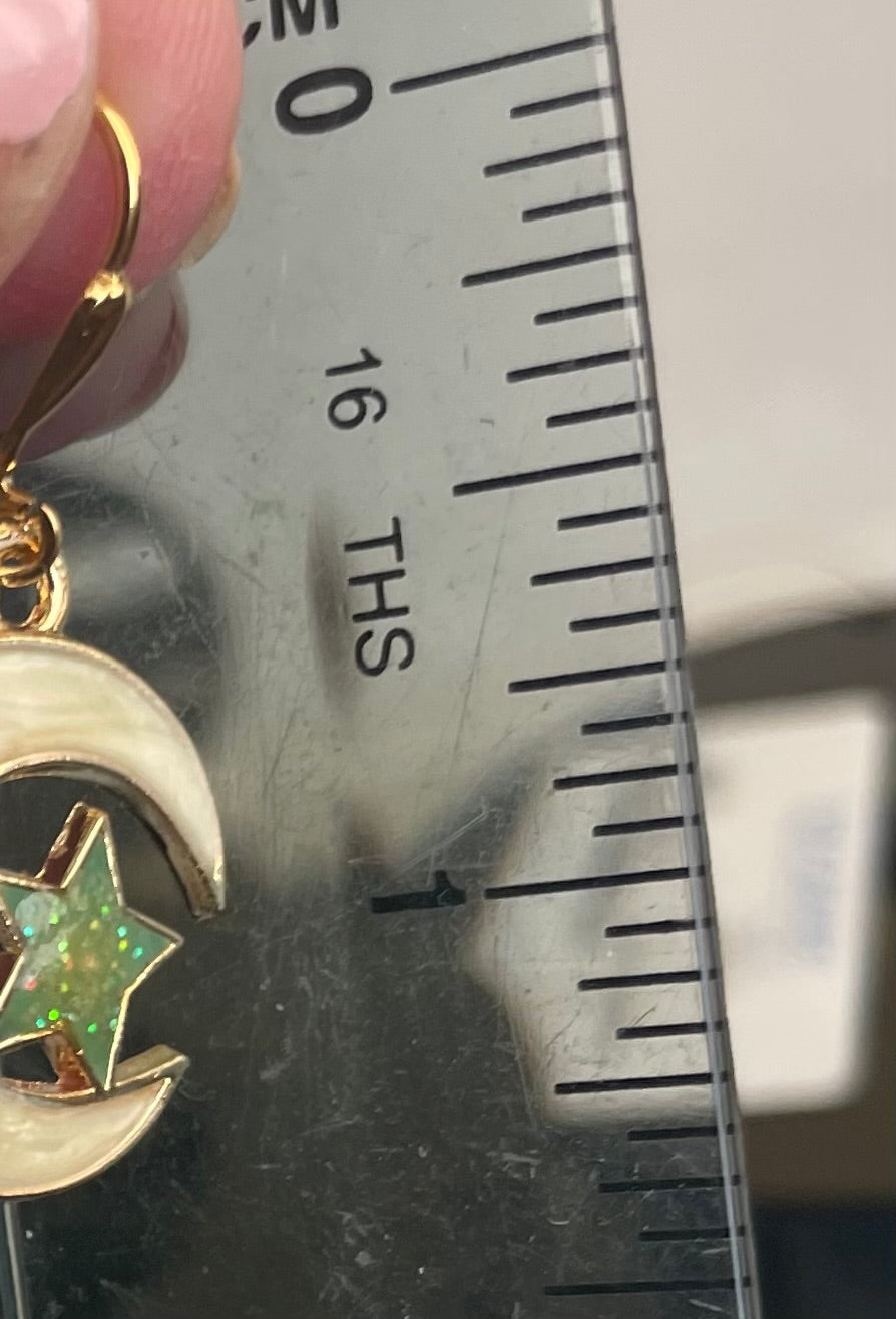 These are fun faux earrings designed to look like mother of pearl and opal. It’s that faux enamel look. Gold base metal and gold plated leverback earrings. Apprx length is 1 3/8”. Your earrings will arrive beautifully giftboxed.