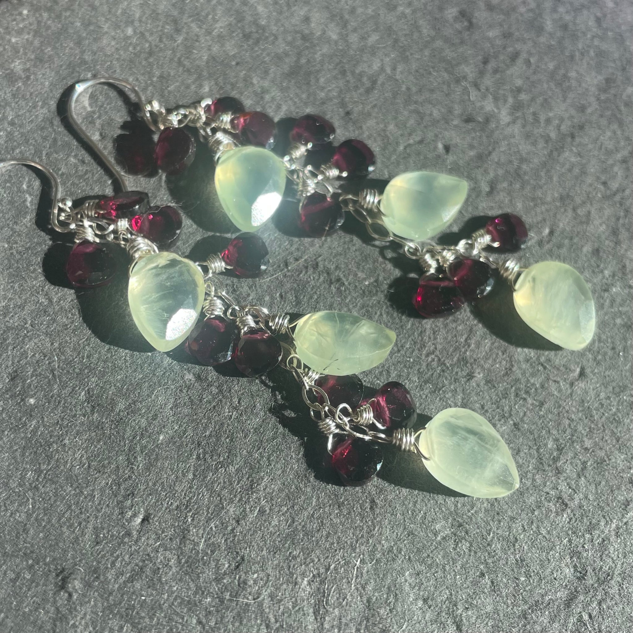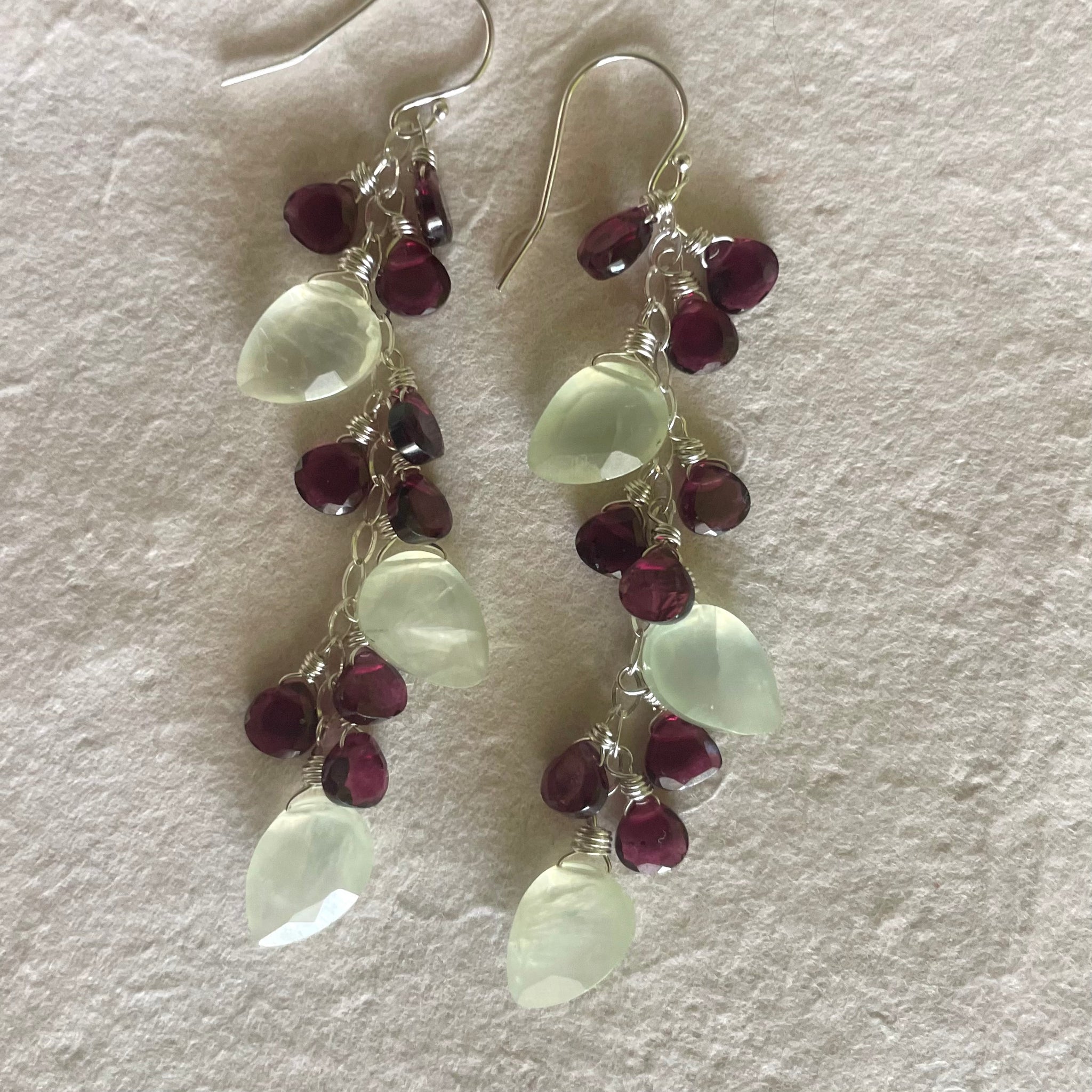 Cherry Tree Prehnite and Garnet Cascade Earrings