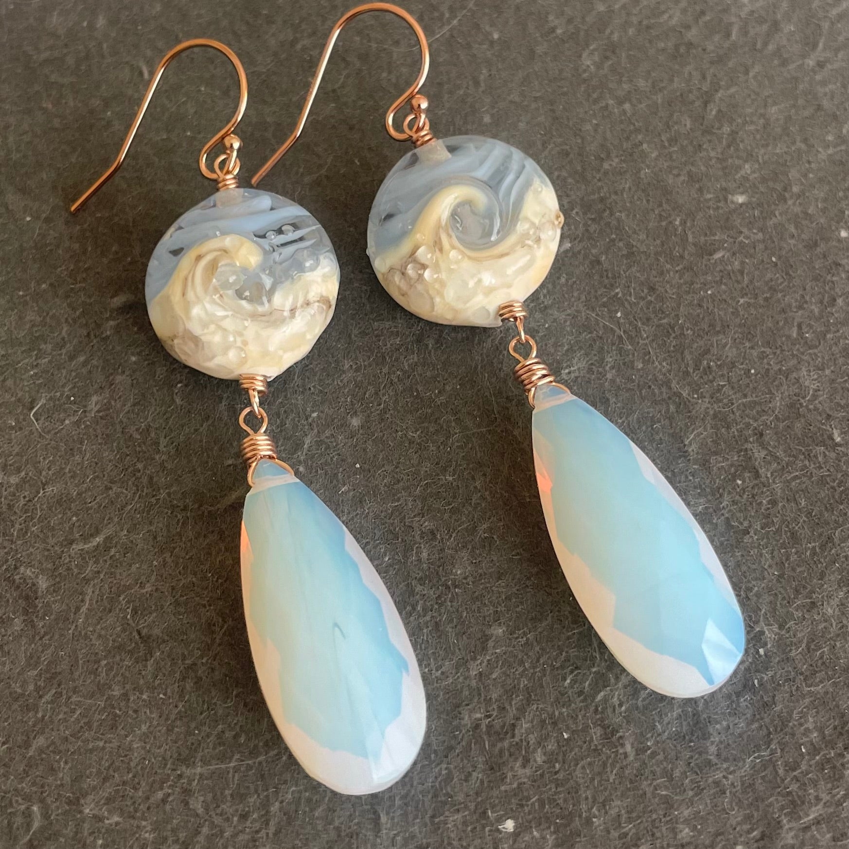 They are wired in your choice of metal with faceted opalite quartz and your choice of the sterling silver French hook earwires shown or leverback earwires.