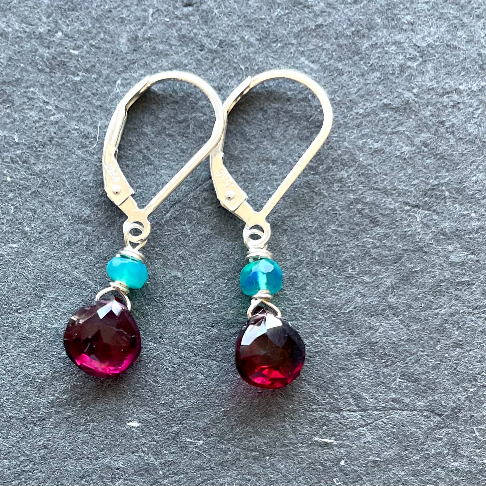 Sweet small rhodolite garnets wrapped in your choice of metal ( sterling silver , 14k yellow gold filled or 14k rose gold filled ) and 7 earwire choices.