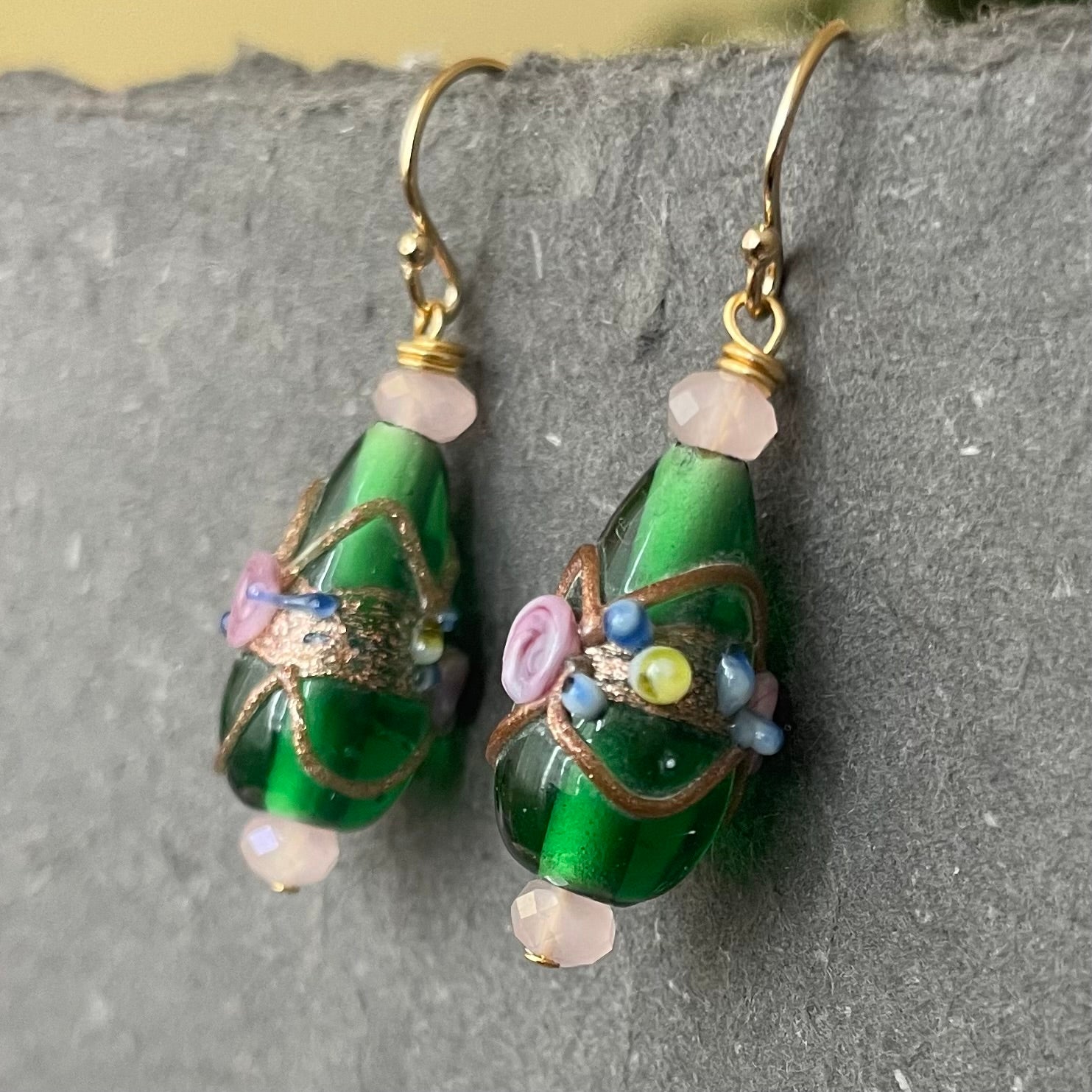 The condition and details are pristine! I have wired these on a gold plated pin with crystals and 14k gold filled earwires.